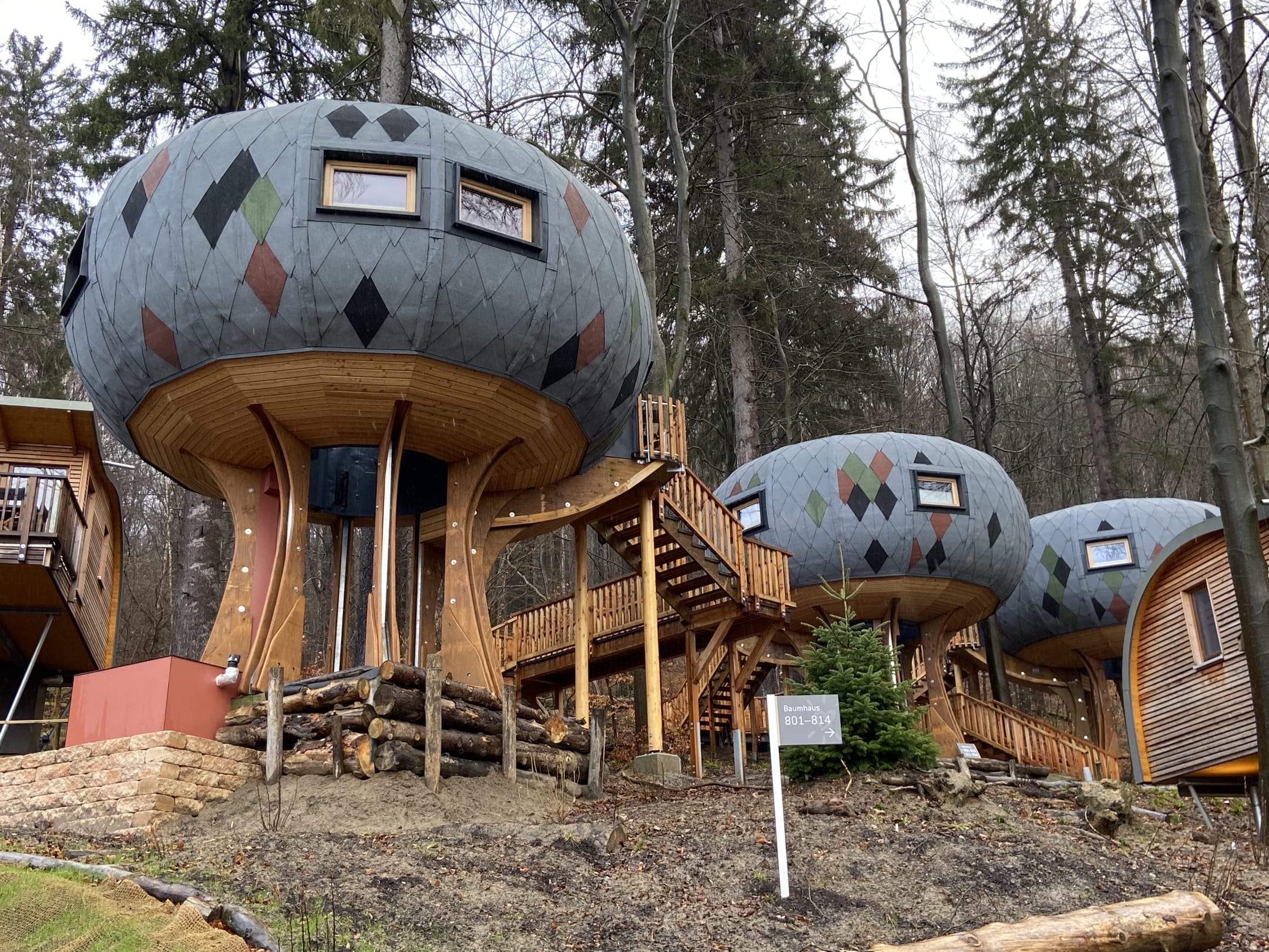 Baumhäuser unmittelbar daneben.
