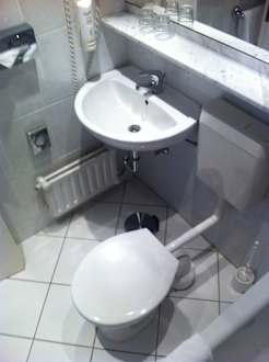 Das Bad ist sehr eng, die Bewegung eingeschränkt
