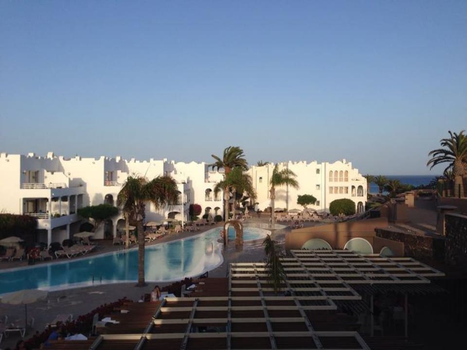 Appartments und Animationspool am Abend