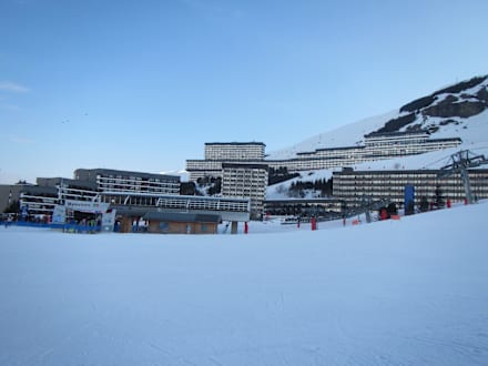 vorn Lift der Talstation Les Menuires, im Hintergrund Hotelkomplex