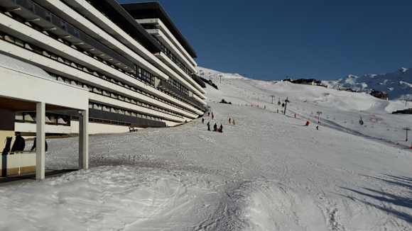 Blick von der Terrasse,links zum Skihang.