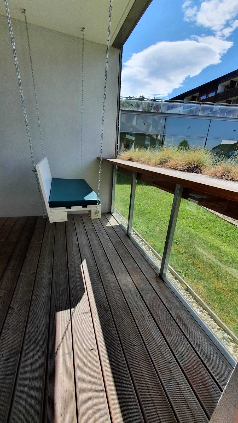 Entspanntes Schaukeln zu zweit am Balkon.