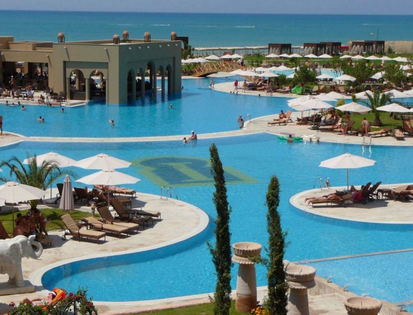 Blick über die riesige Poolanlage
