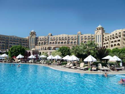 Blick vom Pool zum Hotel