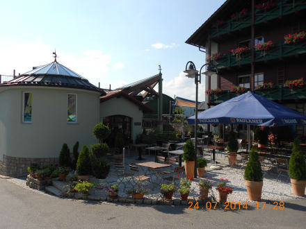 Blick zur Sauna