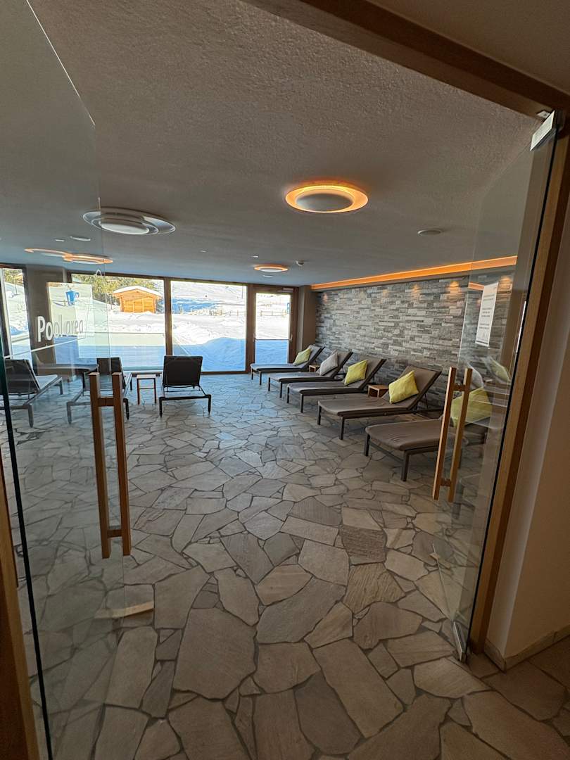 Ruhebereich mit Blick zum Außen Pool