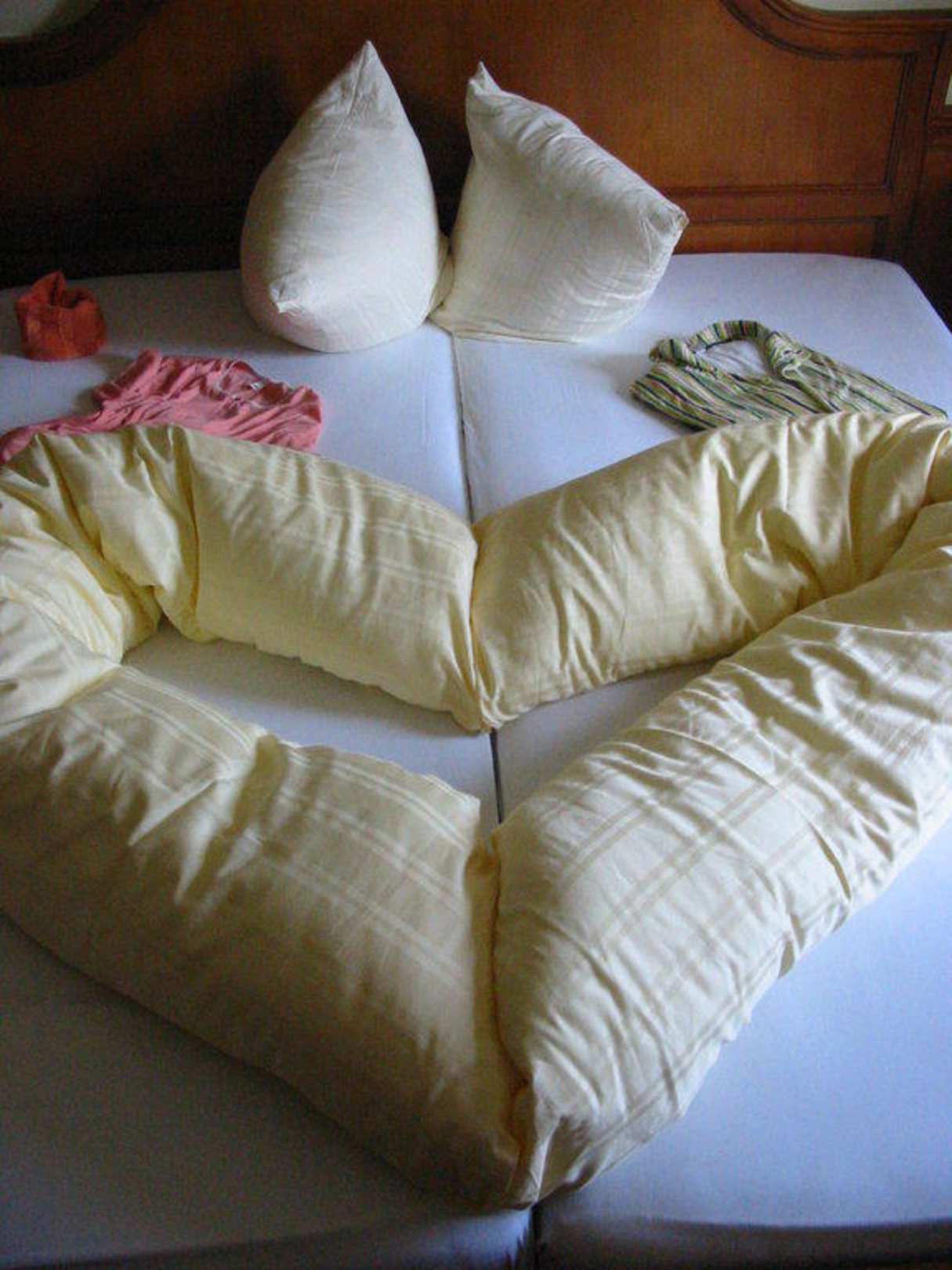 Das Herzel BettDie Betten wurden jedenTag in einer neuen Variante hergerichtet.