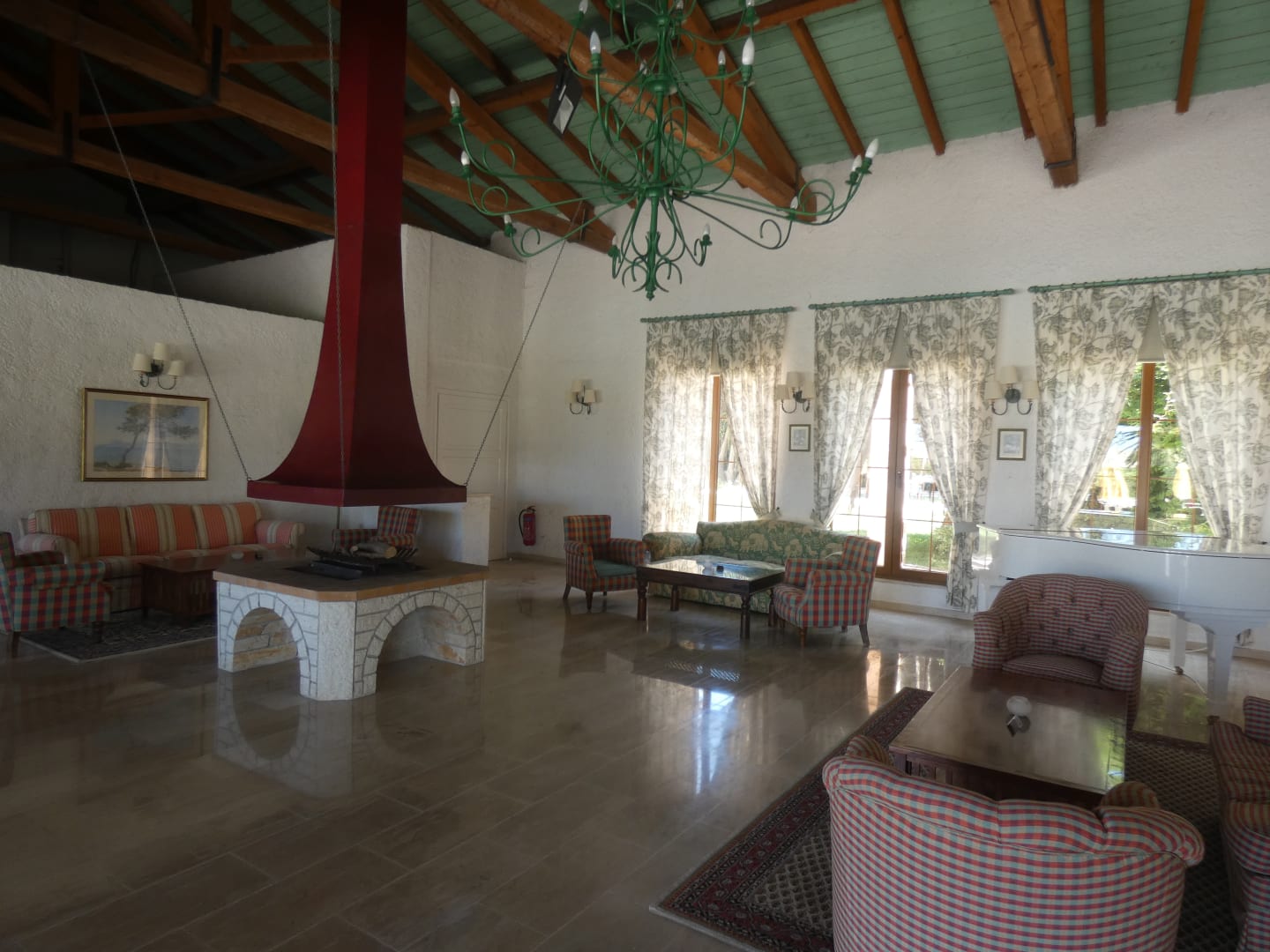 Die Bibliothek: rustikal - gemütlich; abends erklingt klassische Musik vom elektronischen Klavier, die man leise und dezent am und im Pool hören kann