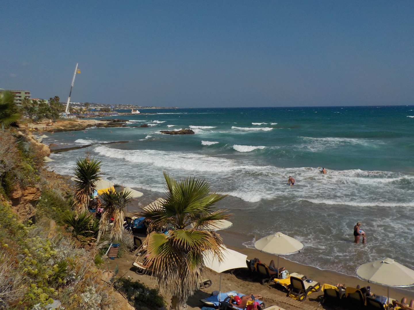 der ruhige Strandabschnitt, mit Blick au den Bungee Kran