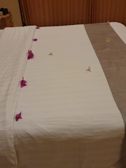 Blütengeschmücktes Bett