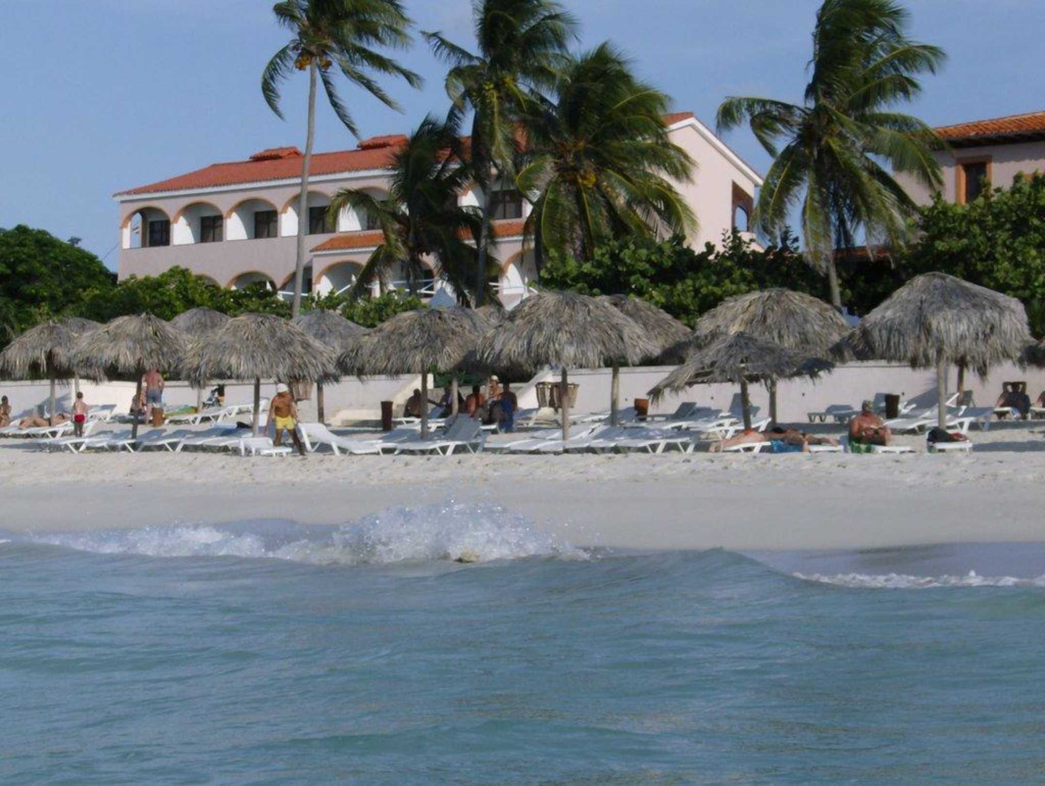 Blick auf das Hotel vom Meer