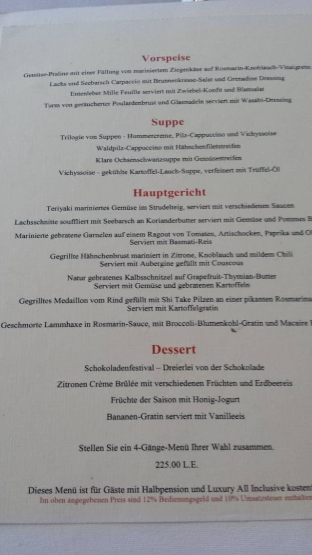 Speisekarte Alexanders Restaurant