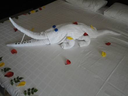 HandtuchkrokodilTäglich gibt es neue " Haustiere" im Zimmer. Originell und sehr kreativ!