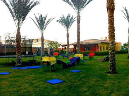 Der Spielplatz (im Hintergrund der KidsClub)