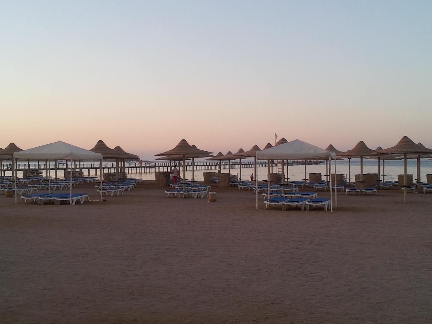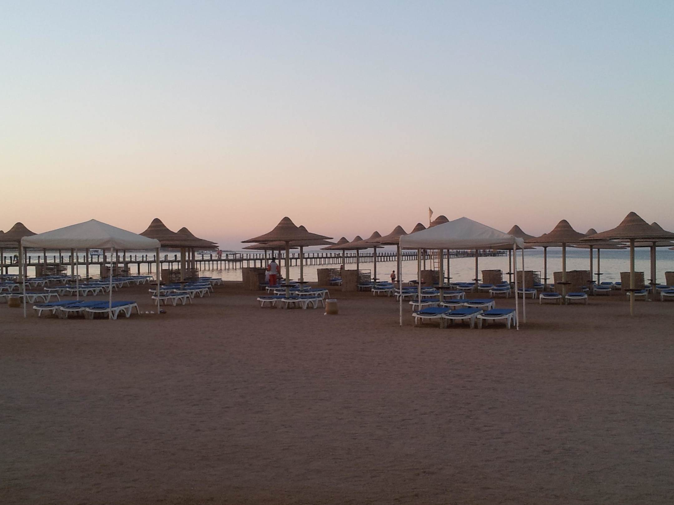 Strandliegen und Sonnenschirme