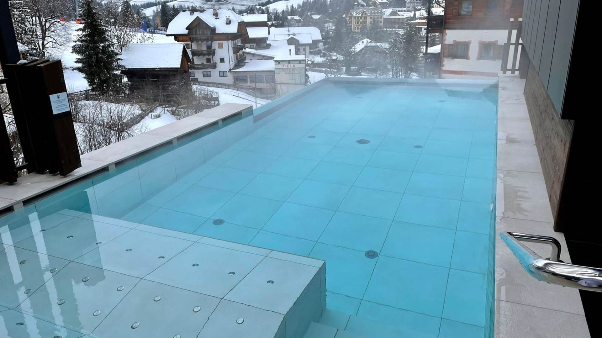 Pool auf dem Dach mit Blick ins Skigebiet