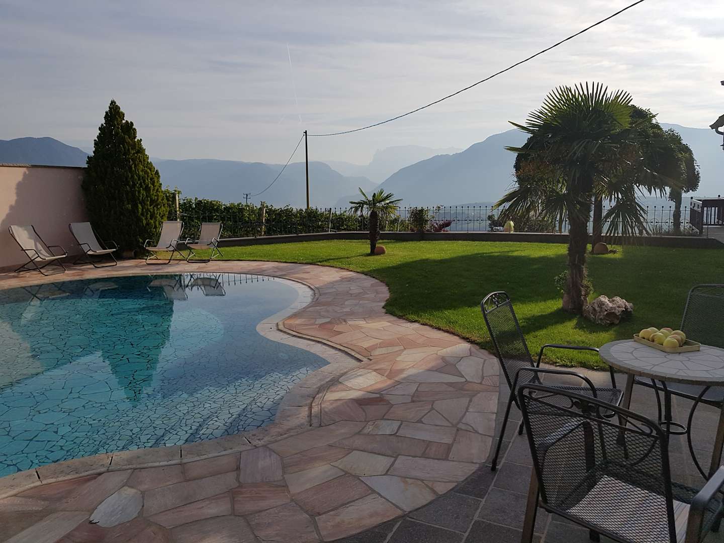 PoolSehr schön angelegter Garten mit Pool, Liegestühlen und Sitzecke