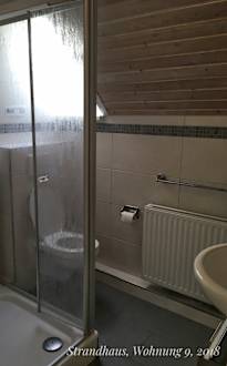 Strandhaus Langeoog, Wohnung 9, Bad mit Dusche, Fön vorhanden