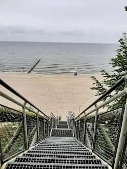 Der Weg aus dem Wald direkt zum Strand: Die Treppe führt mitten in den Sand
