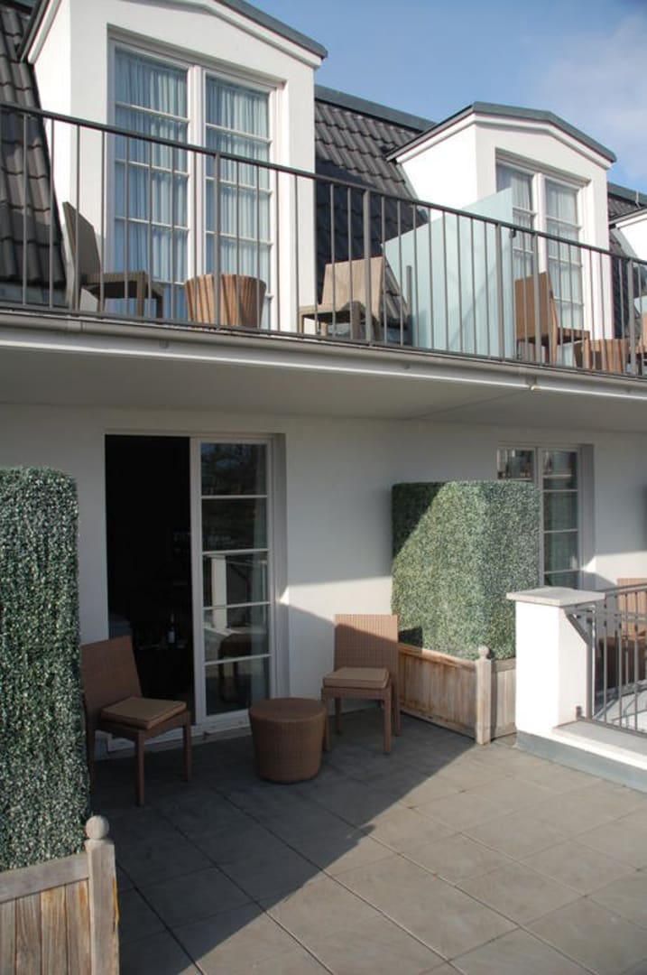 Terrasse des Zimmers mit darüberliegenden Einheiten