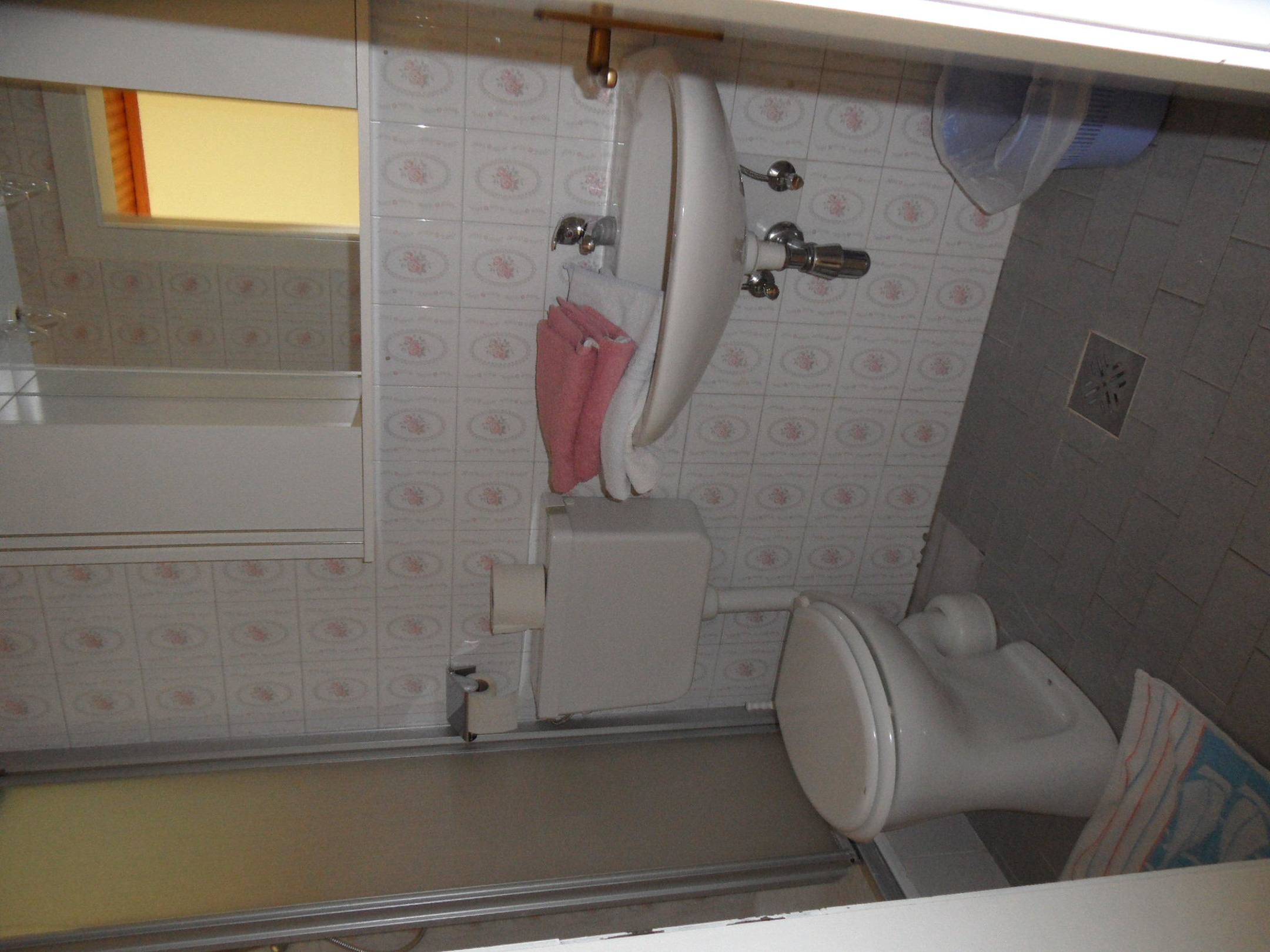 Kleines, sauberes und zweckmässiges Badezimmer mit Fenster zum Öffnen....