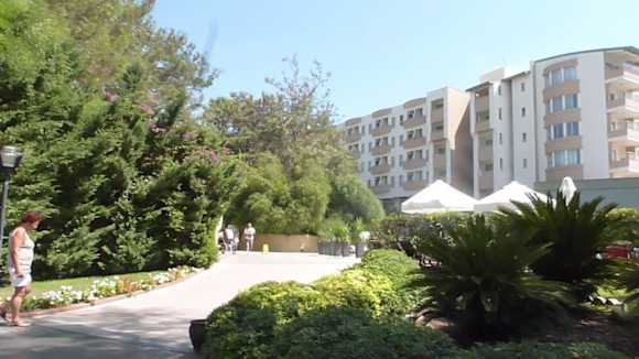 Hotel vom Garten aus betrachtet. Alle Wege sind sehr, sehr gepflegt