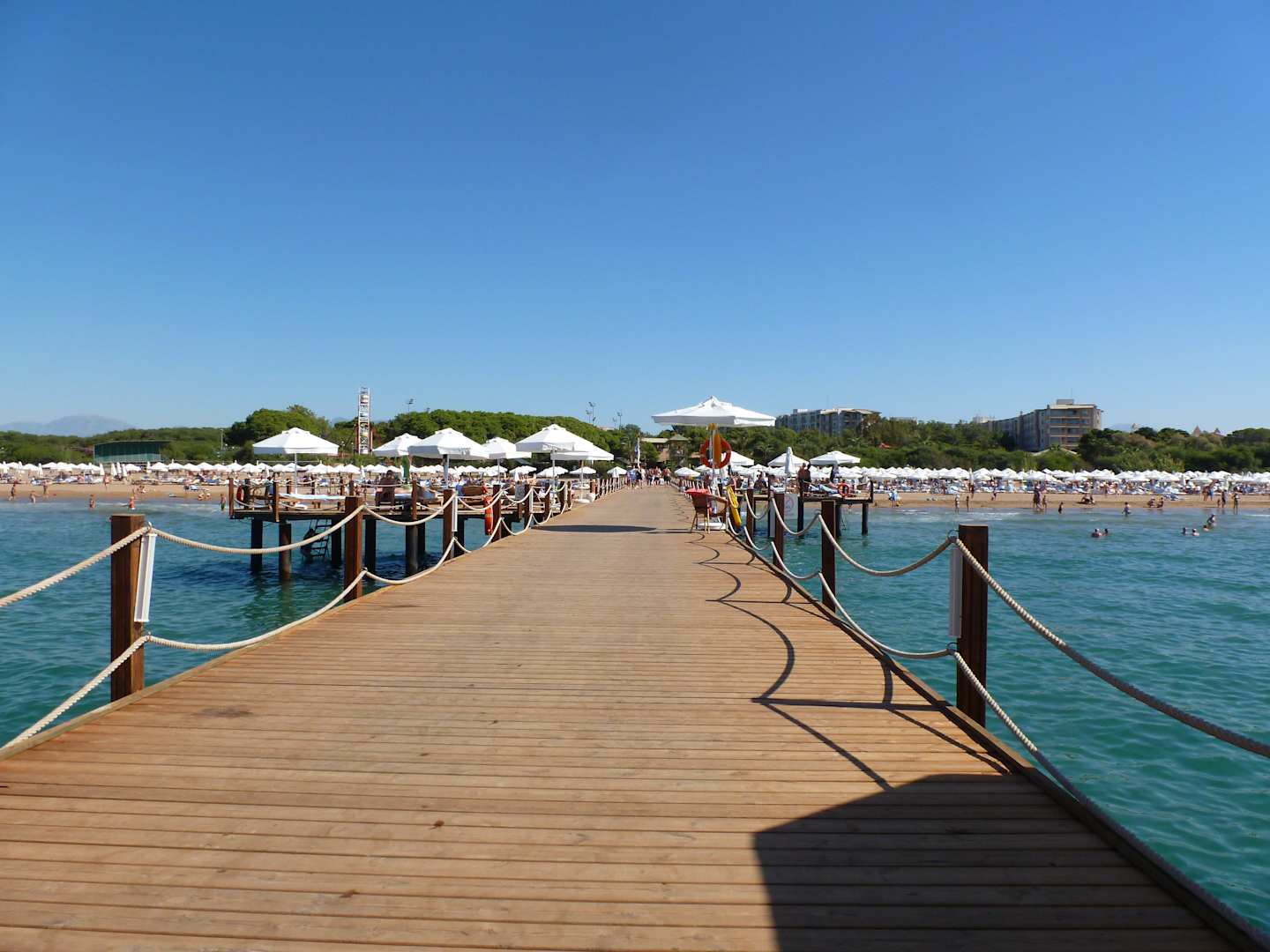 Über den Steg zur Bar und Relaxliegen