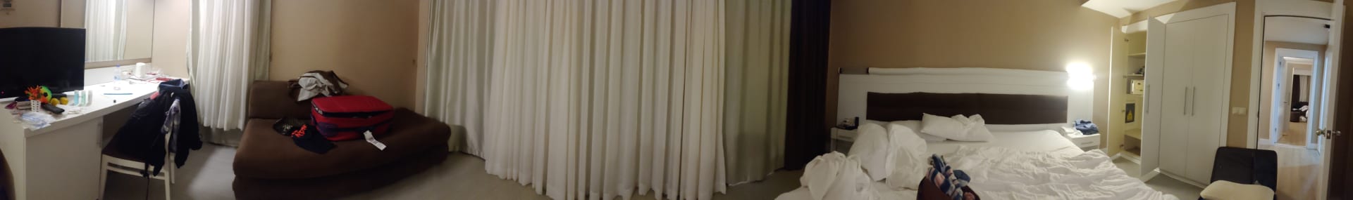 Panoramablick, durch die Tür sieht man rüber in den Flur in das andere identische Zimmer