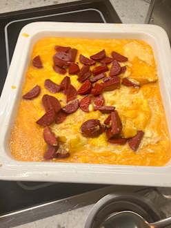 Da keine Abseckung vorhanden sieht das Rührei beim Frühstück kurz nach 7 Uhr so aus lecker