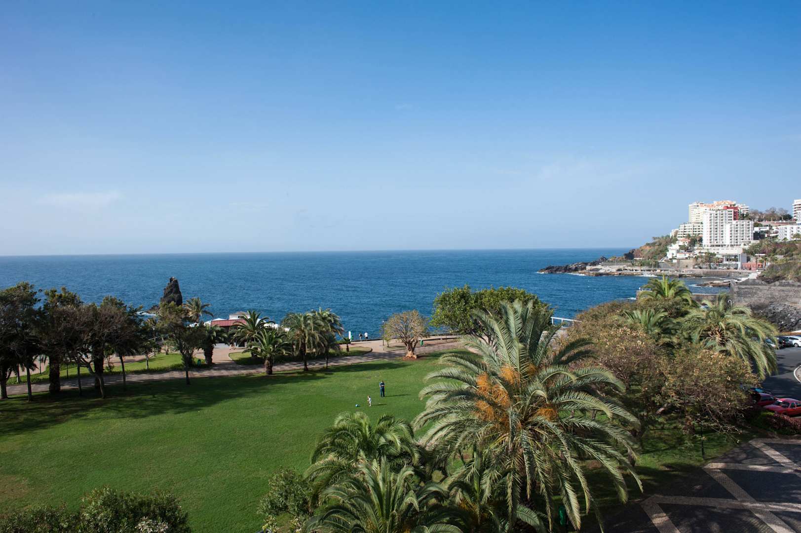 Blick von der Gartenanlage aufs Meer