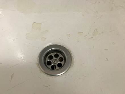 Die Badewanne hat auch schon bessere Tage gesehen. Muss so 1970 gewesen sein!