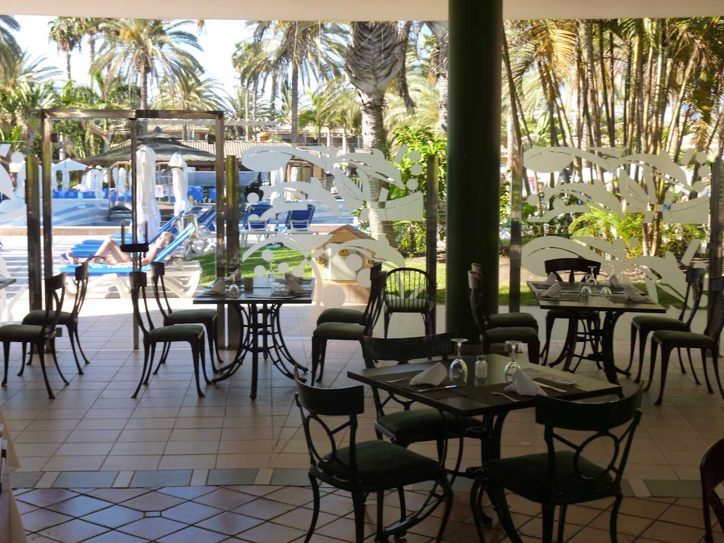 aussenbereichdes Restaurants, mit Blick zum Hauptpool, konnte man gut sitzen, wenn auch etwas lauter, aber nicht so warm