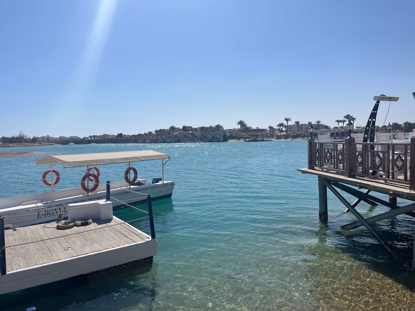Lagune direkt am Hotel mit dem Shuttle-Boot, um an den Strand zu kommen