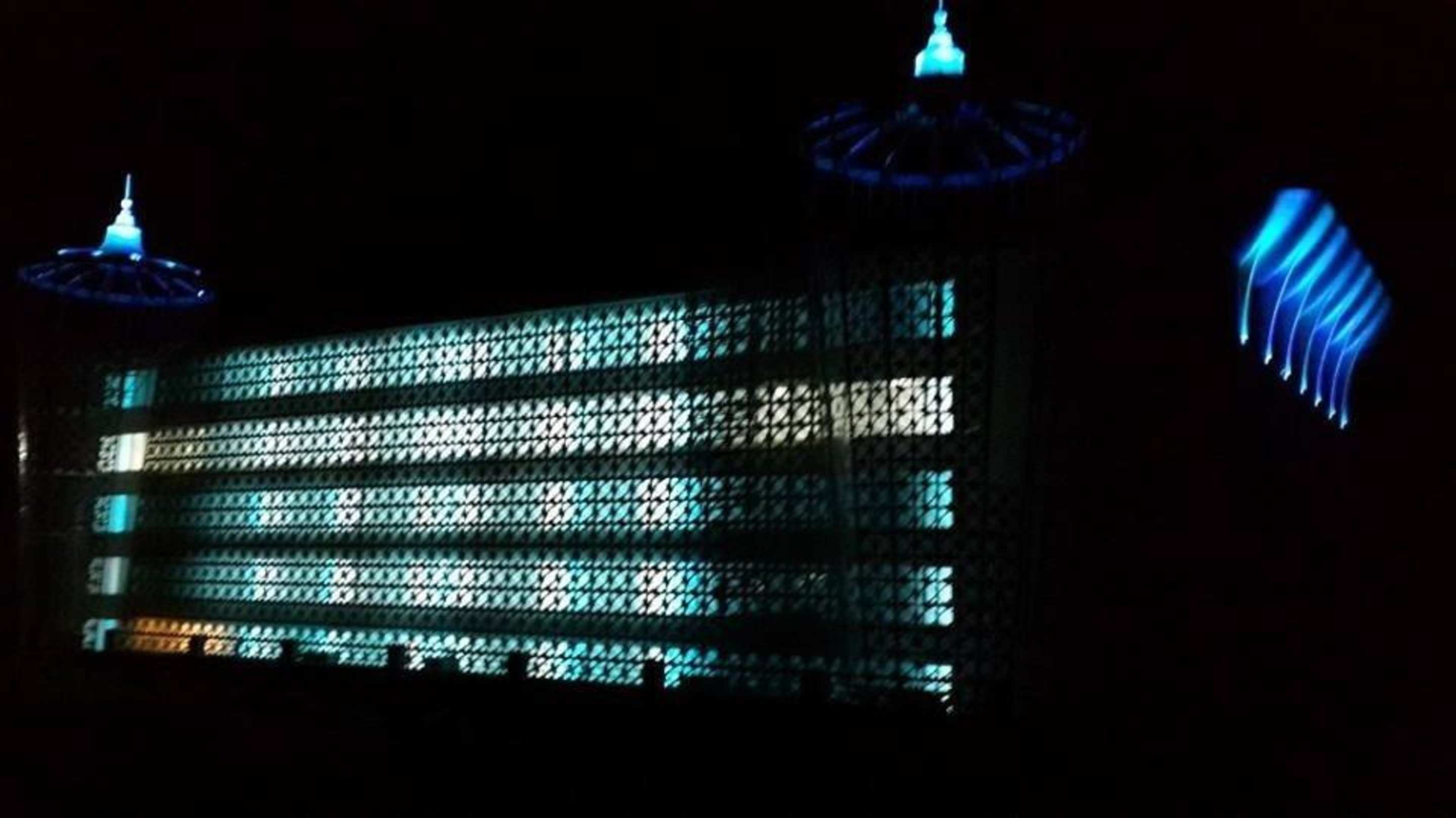 The hotel building at night