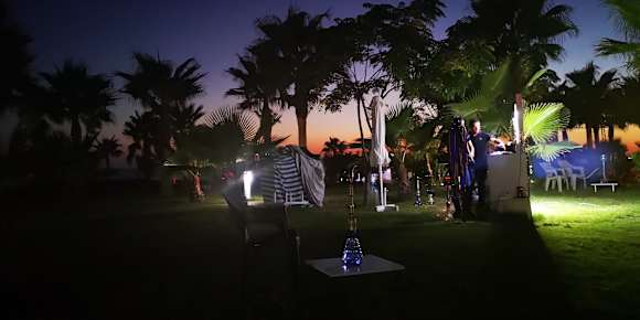 Hier sitzt man vor dem Hotel und kann gemütlich eine Shisha rauchen
