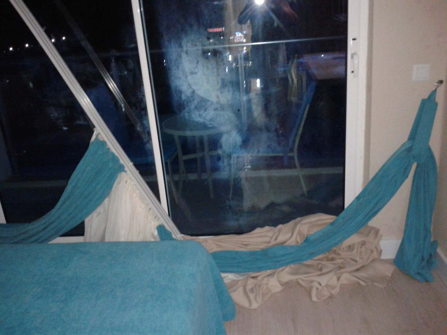 Gardine mit Karniese auf dem Boden