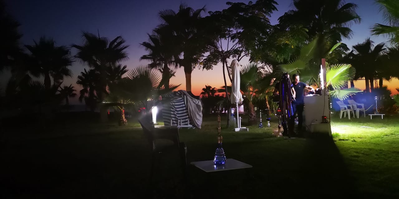Hier sitzt man vor dem Hotel und kann gemütlich eine Shisha rauchen