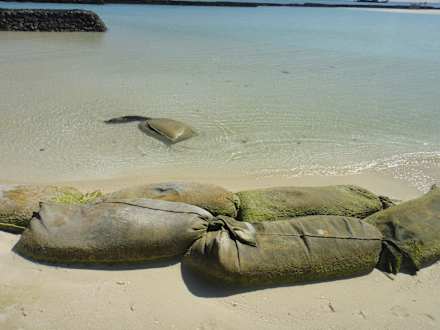 In die Jahre gekommende Sandsäcke