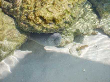 Eine kleine gepunktete Muräne in ihrem "Korallenhaus".