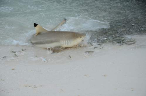 Morgentliche Haie beim Fressen am Strand