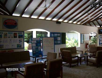 Hier kann man sich für Ausflüge eintragen und über Alles mögliche informieren. Und hier gibt es einen Fernseher, für Leute die nicht ohne können.