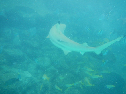 Schwarzspitzenriffhai mit Putzfrau