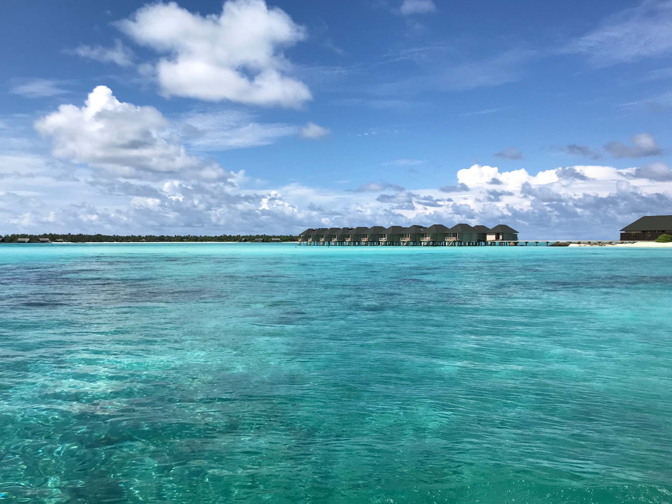 Bild vom Boot auf die Wasservillen