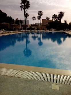 Poolbereich abends mit Beleuchtung