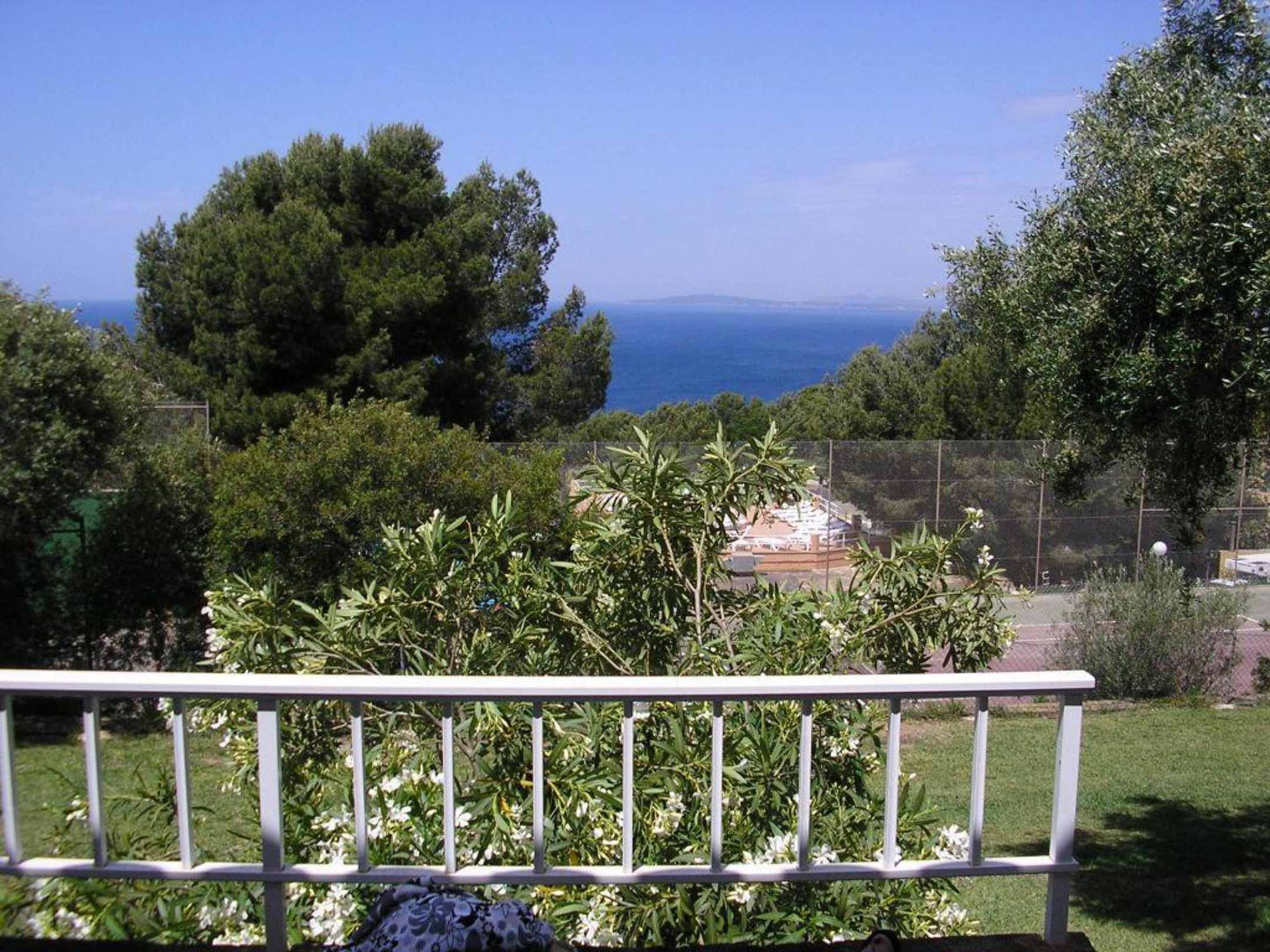 Ausblick aus dem "Studio-Apartment" Nr. 3Blick von der kleinen Terrasse vor unserer Haustür aufs Meer, sowie einen der Tennisplätze