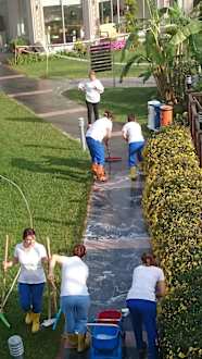 Jeden Morgen wird alles sauber gemacht.