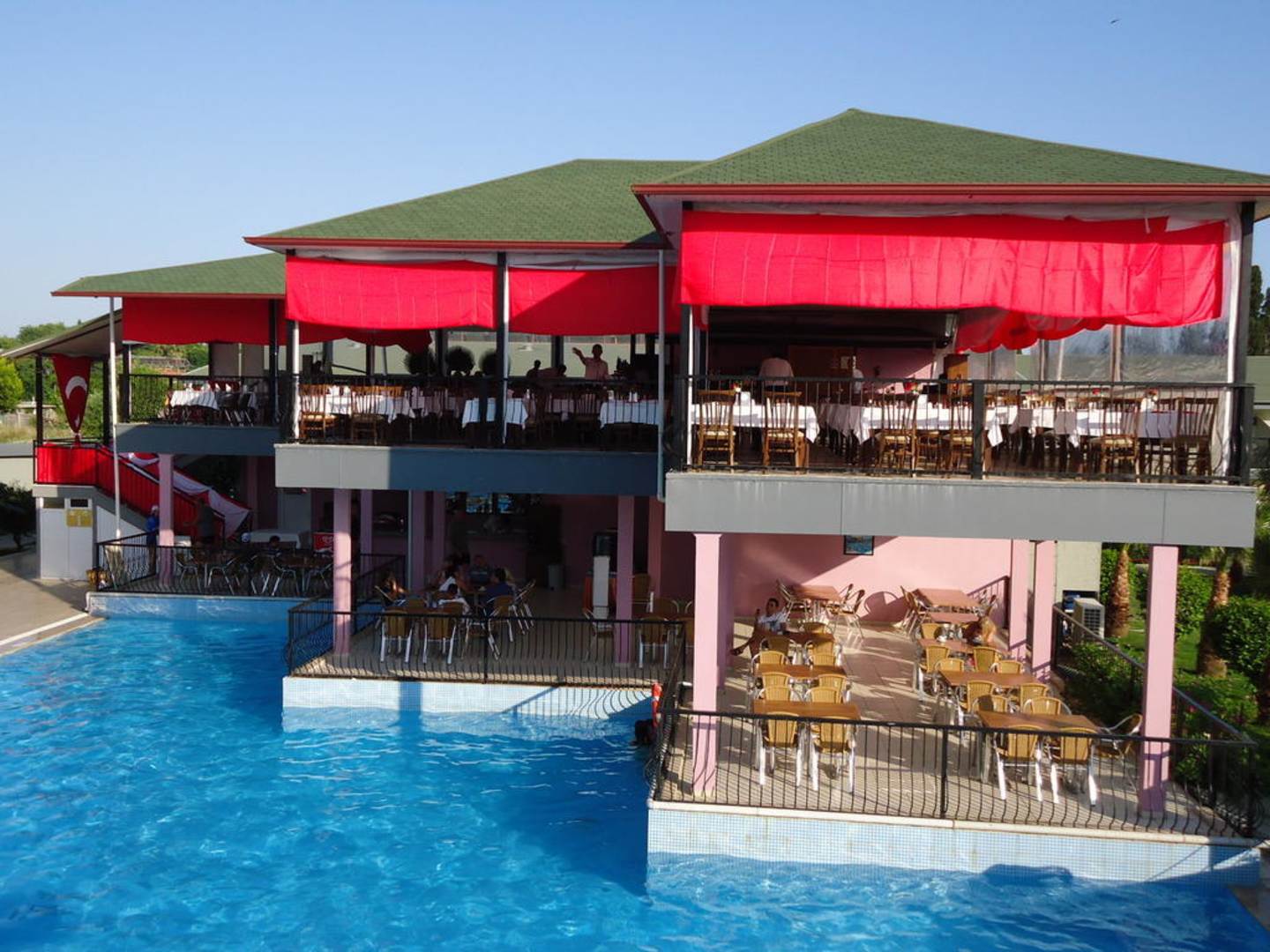 Blick aus unserem Zimmer auf das Restaurant am Türkischen Abend