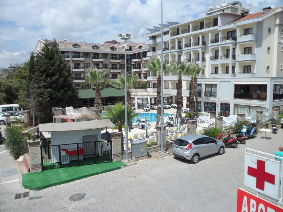 Blick v.d. Holzsonnenterrasse auf das Nachbarhotel
