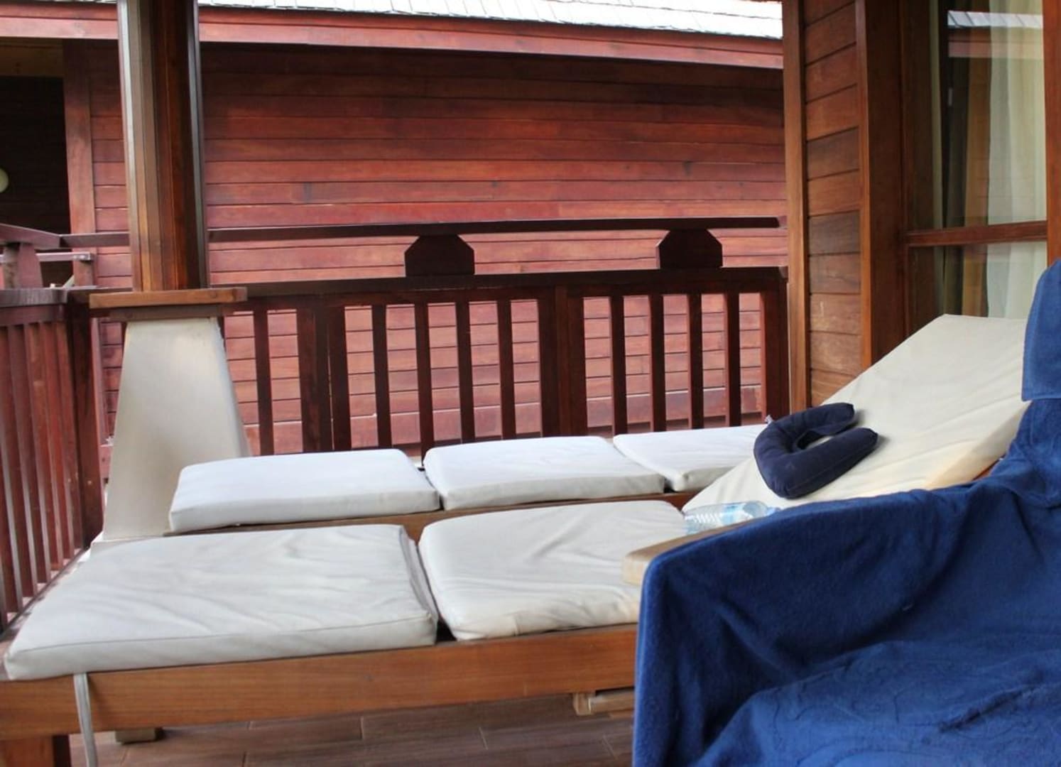 Schöne Holzliegen mit Auflagen