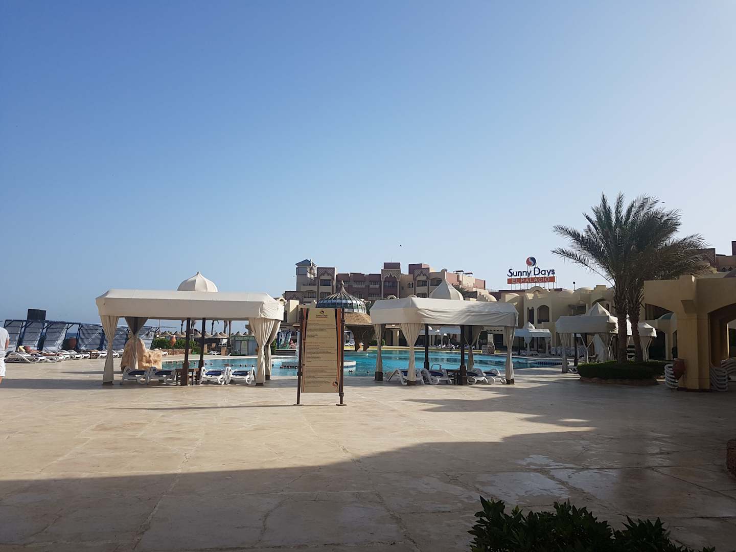 Das ist der Blick von unserem zimmereigenen Balkon auf den 2. Pool! In diesem befindet sich eine Poolbar welche von 10 Uhr morgens bis Sonnenuntergang besetzt ist! Das Personal ist sehr freundlich und zuvorkommend.